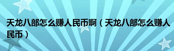 关于天龙八部怎么赚人民币啊,天龙八部怎么赚人民币这个很多人还不知道,今天菲菲来为大家解答以上的问题,现在让我们一起来看看吧!