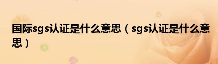 关于国际sgs认证是什么意思,sgs认证是什么意思这个很多人还不知道,今天菲菲来为大家解答以上的问题,现在让我们一起来看看吧!