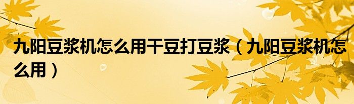 大家好,小飞来为大家解答以上问题,九阳豆浆机怎么用干豆打豆浆,九阳豆浆机怎么用很多人还不知道,现在让我们一起来看看吧!