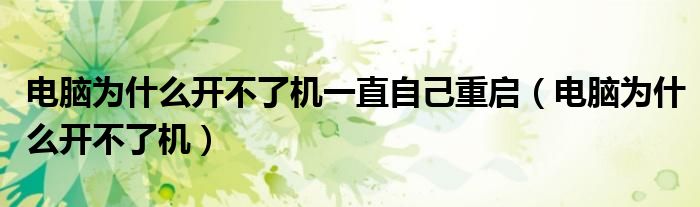 大家好,小飞来为大家解答以上问题,电脑为什么开不了机一直自己重启,电脑为什么开不了机很多人还不知道,现在让我们一起来看看吧!
