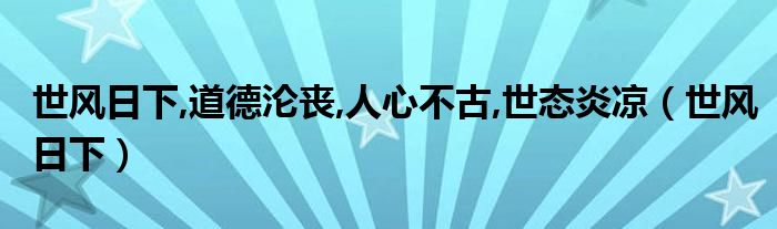 世风日下,道德沦丧,人心不古,世态炎凉(世风日下)
