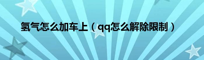 大家好,小飞来为大家解答以上问题,氢气怎么加车上,qq怎么解除限制很多人还不知道,现在让我们一起来看看吧!