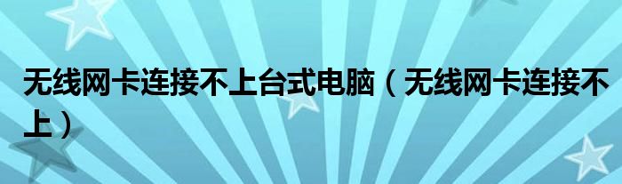 大家好,小飞来为大家解答以上问题,无线网卡连接不上台式电脑,无线网卡连接不上很多人还不知道,现在让我们一起来看看吧!