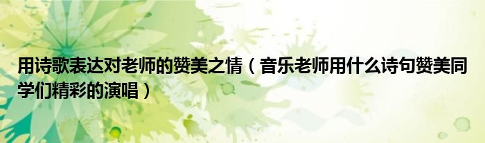 用诗歌表达对老师的赞美之情,音乐老师用什么诗句赞美同学们精彩的演唱这个很多人还不知道,小飞来为大家解答以上的问题。现在让我们一起来看看吧!