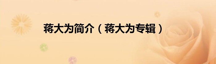 蒋大为简介,蒋大为专辑这个很多人还不知道,小飞来为大家解答以上的问题。现在让我们一起来看看吧!
