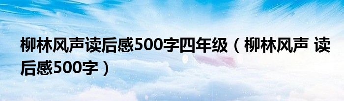 关于柳林风声读后感500字四年级,柳林风声 读后感500字这个很多人还不知道,今天菲菲来为大家解答以上的问题,现在让我们一起来看看吧!
