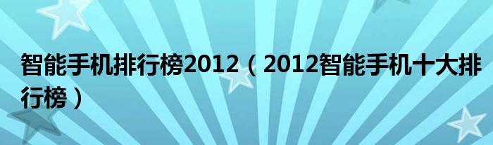 大家好,小常来为大家解答以上问题。智能手机排行榜2012,2012智能手机十大排行榜很多人还不知道,现在让我们一起来看看吧!