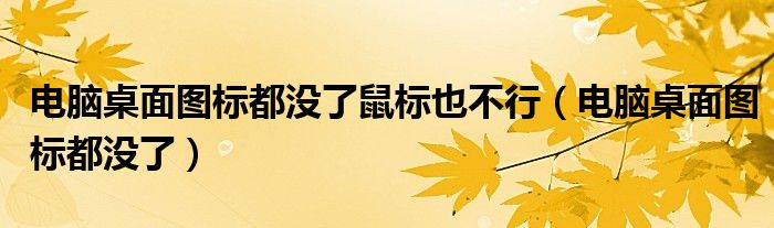 大家好,小飞来为大家解答以上问题,电脑桌面图标都没了鼠标也不行,电脑桌面图标都没了很多人还不知道,现在让我们一起来看看吧!