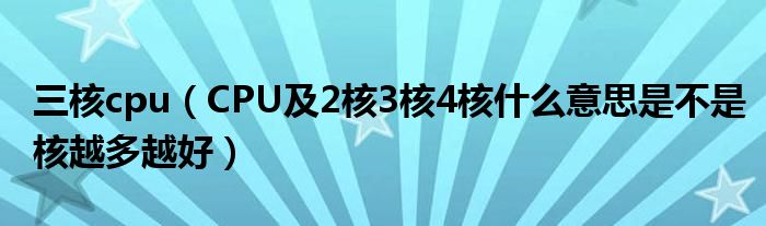 大家好,小常来为大家解答以上问题。三核cpu,CPU及2核3核4核什么意思是不是核越多越好很多人还不知道,现在让我们一起来看看吧!