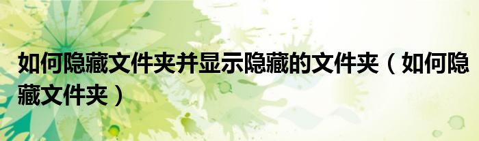 在隐藏文件夹之前,我们需要知道什么是隐藏文件。隐藏文件也是文件的一个属性。虽然作用不大,但能起到一定的保护作用。隐藏文件夹的方法很简单,但是在学习这个方法的同时,也要知道如何打开隐藏的文件夹。