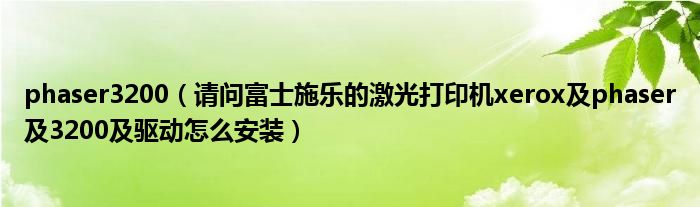 大家好,小常来为大家解答以上问题。phaser3200,请问富士施乐的激光打印机xerox及phaser及3200及驱动怎么安装很多人还不知道,现在让我们一起来看看吧!