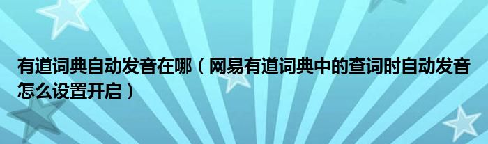 大家好,今天小悦来为大家解答以上问题。有道词典自动发音在哪,网易有道词典中的查词时自动发音怎么设置开启很多人还不知道,现在让我们一起来看看吧!