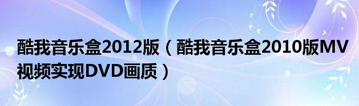 大家好,今天小悦来为大家解答以上问题。酷我音乐盒2012版,酷我音乐盒2010版MV视频实现DVD画质很多人还不知道,现在让我们一起来看看吧!