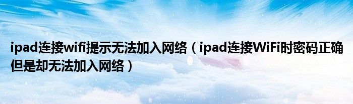 大家好,今天小悦来为大家解答以上问题。ipad连接wifi提示无法加入网络,ipad连接WiFi时密码正确但是却无法加入网络很多人还不知道,现在让我们一起来看看吧!