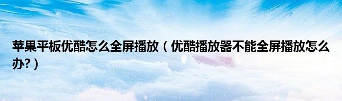 大家好,今天小悦来为大家解答以上问题。苹果平板优酷怎么全屏播放,优酷播放器不能全屏播放怎么办?很多人还不知道,现在让我们一起来看看吧!