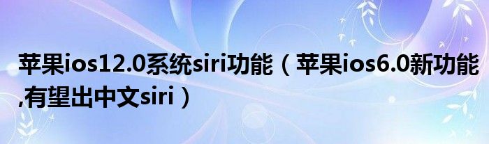 大家好,今天小悦来为大家解答以上问题。苹果ios12.0系统siri功能,苹果ios6.0新功能,有望出中文siri很多人还不知道,现在让我们一起来看看吧!