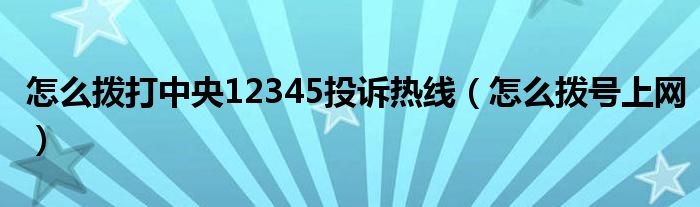大家好,今天小悦来为大家解答以上问题。怎么拨打中央12345投诉热线,怎么拨号上网很多人还不知道,现在让我们一起来看看吧!