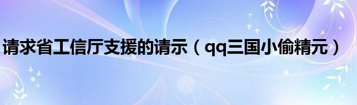 请求省工信厅支援的请示,qq三国小偷精元这个很多人还不知道,小飞来为大家解答以上的问题。现在让我们一起来看看吧!