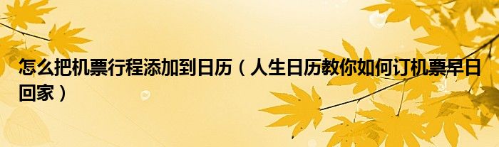 大家好,今天小悦来为大家解答以上问题。怎么把机票行程添加到日历,人生日历教你如何订机票早日回家很多人还不知道,现在让我们一起来看看吧!