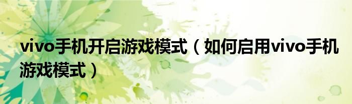 大家好,今天小悦来为大家解答以上问题。vivo手机开启游戏模式,如何启用vivo手机游戏模式很多人还不知道,现在让我们一起来看看吧!