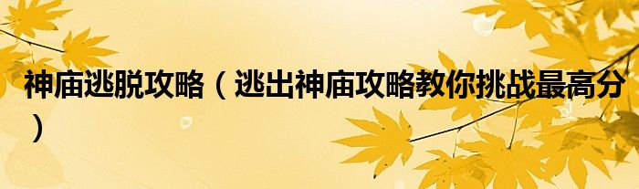 大家好,今天小悦来为大家解答以上问题。神庙逃脱攻略,逃出神庙攻略教你挑战最高分很多人还不知道,现在让我们一起来看看吧!