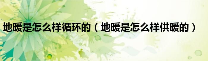 大家好,慧慧来为大家解答以上问题,地暖是怎么样循环的,地暖是怎么样供暖的很多人还不知道,现在让我们一起来看看吧!