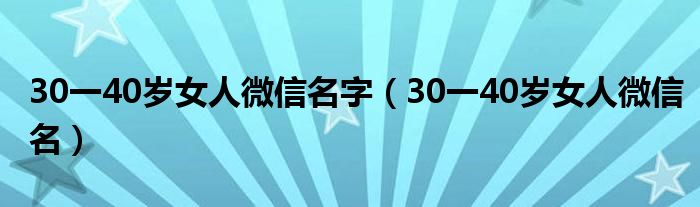 大家好,慧慧来为大家解答以上问题,30一40岁女人微信名字,30一40岁女人微信名很多人还不知道,现在让我们一起来看看吧!