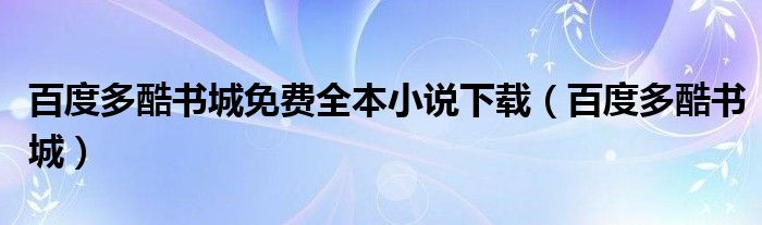 大家好,慧慧来为大家解答以上问题,百度多酷书城免费全本小说下载,百度多酷书城很多人还不知道,现在让我们一起来看看吧!