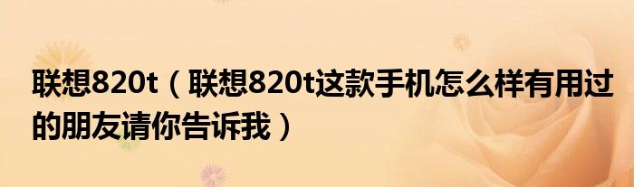 大家好,小常来为大家解答以上问题。联想820t,联想820t这款手机怎么样有用过的朋友请你告诉我很多人还不知道,现在让我们一起来看看吧!