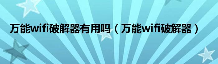 大家好,慧慧来为大家解答以上问题,万能wifi破解器有用吗,万能wifi破解器很多人还不知道,现在让我们一起来看看吧!