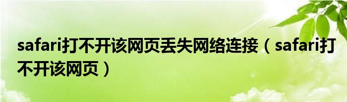 大家好,慧慧来为大家解答以上问题,safari打不开该网页丢失网络连接,safari打不开该网页很多人还不知道,现在让我们一起来看看吧!