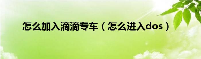 大家好,慧慧来为大家解答以上问题,怎么加入滴滴专车,怎么进入dos很多人还不知道,现在让我们一起来看看吧!