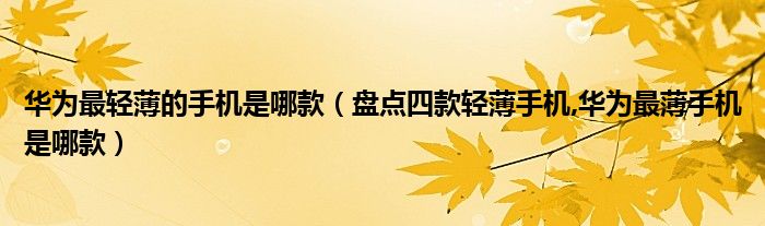 大家好,小常来为大家解答以上问题。华为最轻薄的手机是哪款,盘点四款轻薄手机,华为最薄手机是哪款很多人还不知道,现在让我们一起来看看吧!