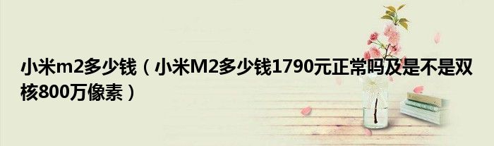 1,小米M2多少钱?1790元正常吗? 是不是双核?800万像素。:小米M2官网已经没得卖了,现在卖的是升级版M2s和M3。官网mi2s(32G)价格1799。米2cpu高通骁龙 APQ8064 1.5GHz(4核),4.3英寸720P ips显示屏,后800万前200万摄像头。建议官网入手mi2s和mi3