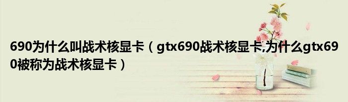 大家好,小常来为大家解答以上问题。690为什么叫战术核显卡,gtx690战术核显卡,为什么gtx690被称为战术核显卡很多人还不知道,现在让我们一起来看看吧!