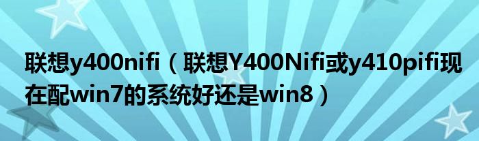 1,联想Y400Nifi或y410pifi现在配win7的系统好还是win8:如果不介意学习新的操作系统的话,建议用win8,win8优化的好,运行速度快的多。注意:联想官方有合适的驱动且不会冲突