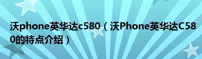 2,沃Phone英华达C580的功能介绍:我们公司有沃Phone英华达C580这款手机,您可以参加“预存话费送手机”以及“购手机入网送话费”合约计划。沃Phone英华达C580 黑色/灰色直板手机,手机参数分别有:沃phone的操作系统,支持GSM、WCDMA网络模式,屏幕为3.5英寸,分辨率为320×480,500万像素的摄像头,电池容量为1300mAh。(上述内容仅适用于广东联通用户)