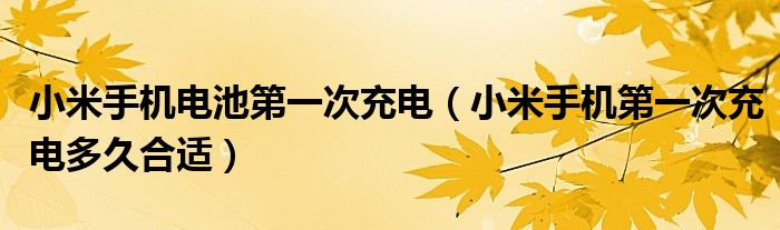 1,小米手机第一次充电多久合适 :小米手机采用的是锂离子聚合物电池,第一次充电不需要充满12个小时,锂电池随用随充即可,建议您充满之后就断开电源。