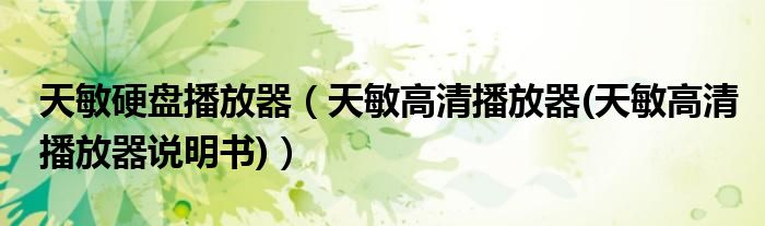 大家好,小常来为大家解答以上问题。天敏硬盘播放器,天敏高清播放器(天敏高清播放器说明书)很多人还不知道,现在让我们一起来看看吧!