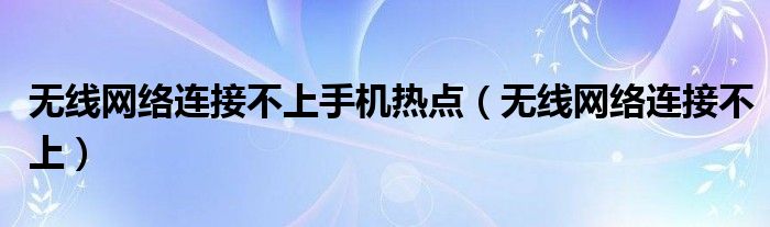 大家好,慧慧来为大家解答以上问题,无线网络连接不上手机热点,无线网络连接不上很多人还不知道,现在让我们一起来看看吧!