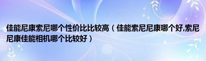 大家好,小常来为大家解答以上问题。佳能尼康索尼哪个性价比比较高,佳能索尼尼康哪个好,索尼尼康佳能相机哪个比较好很多人还不知道,现在让我们一起来看看吧!