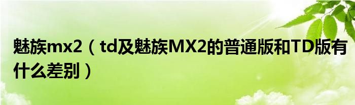 3,魅族mx2 td版是什么意思: 魅族MX2 TD版的网络模式是GSM/TD-SCDMA,魅族MX2手机的网络模式是GSM/WCDMA,区别就是TD版支持移动3G网络,普通版本支持联通3G网络。