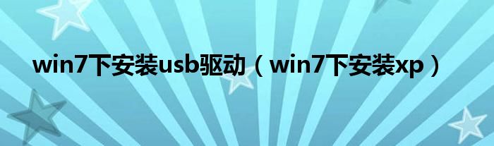 大家好,慧慧来为大家解答以上问题,win7下安装usb驱动,win7下安装xp很多人还不知道,现在让我们一起来看看吧!