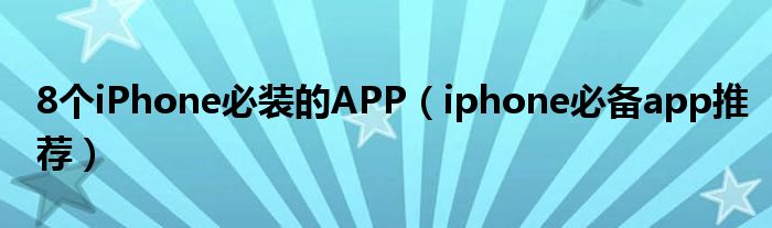 大家好,小常来为大家解答以上问题。8个iPhone必装的APP,iphone必备app推荐很多人还不知道,现在让我们一起来看看吧!