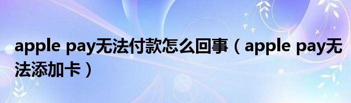 大家好,慧慧来为大家解答以上问题,apple pay无法付款怎么回事,apple pay无法添加卡很多人还不知道,现在让我们一起来看看吧!