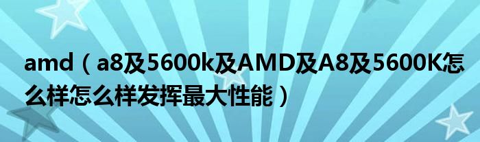 大家好,小常来为大家解答以上问题。amd,a8及5600k及AMD及A8及5600K怎么样怎么样发挥最大性能很多人还不知道,现在让我们一起来看看吧!