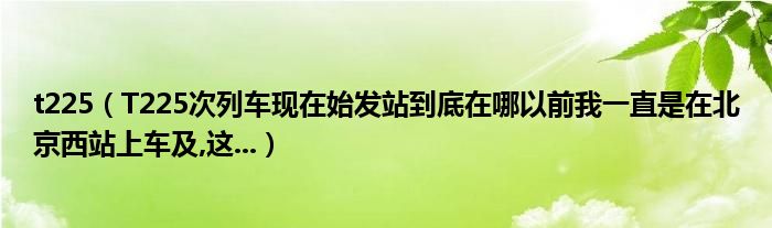 大家好,小常来为大家解答以上问题。t225,T225次列车现在始发站到底在哪以前我一直是在北京西站上车及,这...很多人还不知道,现在让我们一起来看看吧!