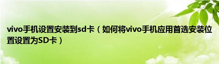 大家好,小太来为大家解答以上问题。vivo手机设置安装到sd卡,如何将vivo手机应用首选安装位置设置为SD卡很多人还不知道,现在让我们一起来看看吧!