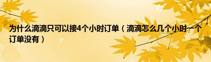 大家好,跳跳为你解答以上问题。为什么滴滴只可以接4个小时订单,滴滴怎么几个小时一个订单没有这个问题很多人还不知道,现在让我们一起来看看吧!