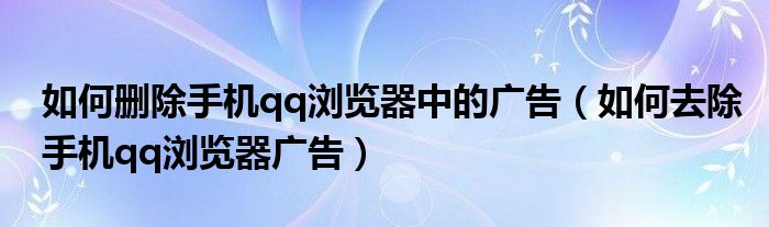 大家好,跳跳为你解答以上问题。如何删除手机qq浏览器中的广告,如何去除手机qq浏览器广告这个问题很多人还不知道,现在让我们一起来看看吧!